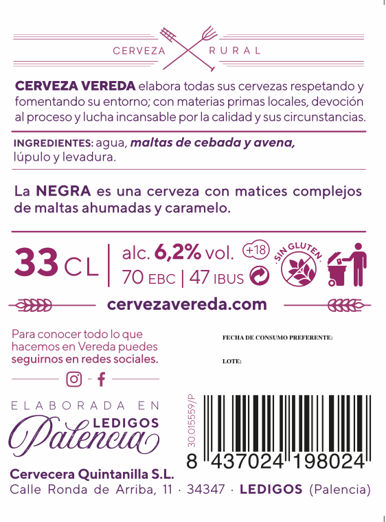 VEREDA elabora todas sus cervezas respetando y fomentando su entorno; con materias primas locales, devoción al proceso y lucha incansable por la calidad y sus circunstancias.